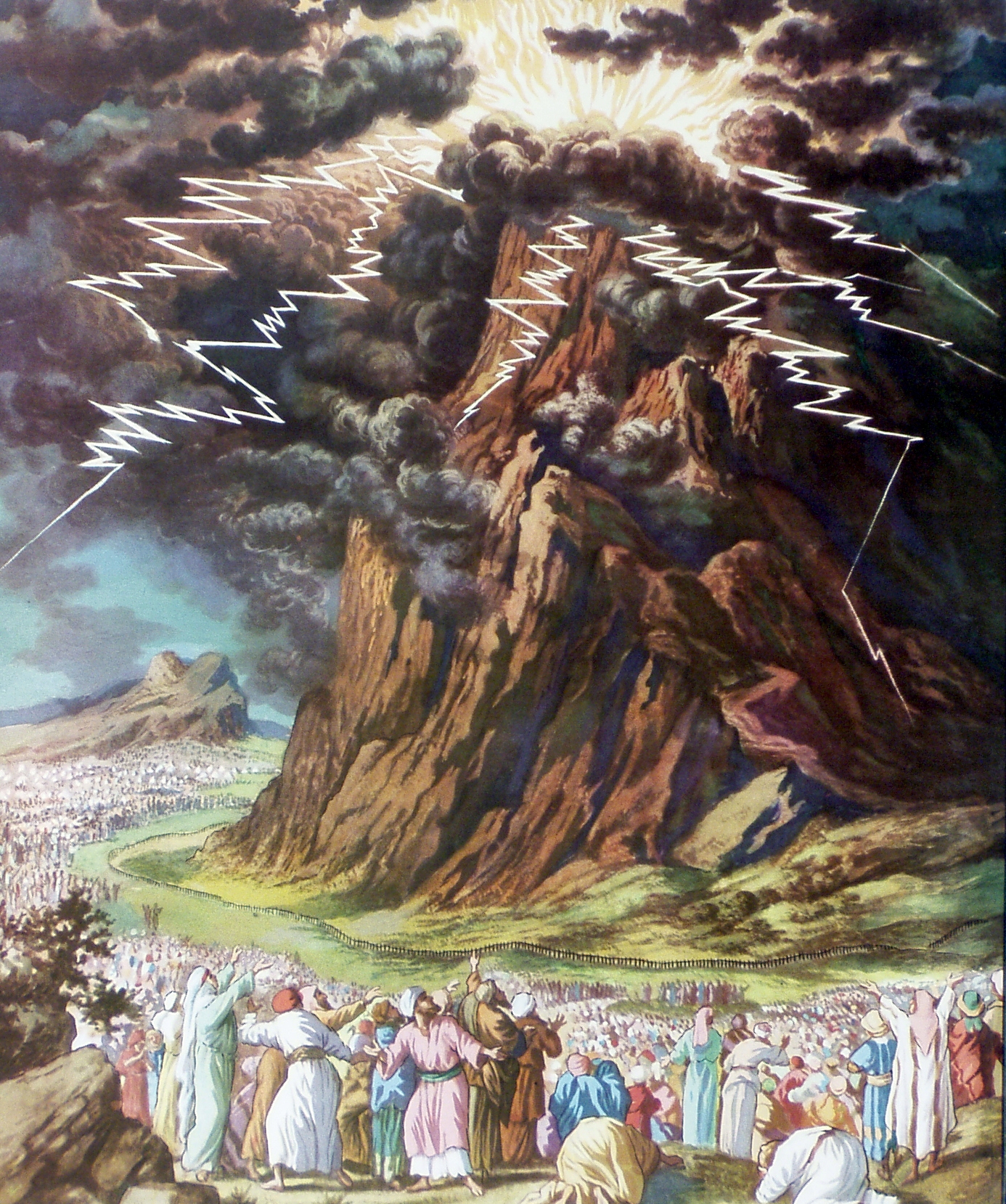 nép menjen közelebb az Úrral találkozni. Míg Mózes a hegy lábához vezette őket villámok csaptak ki a felhőből,