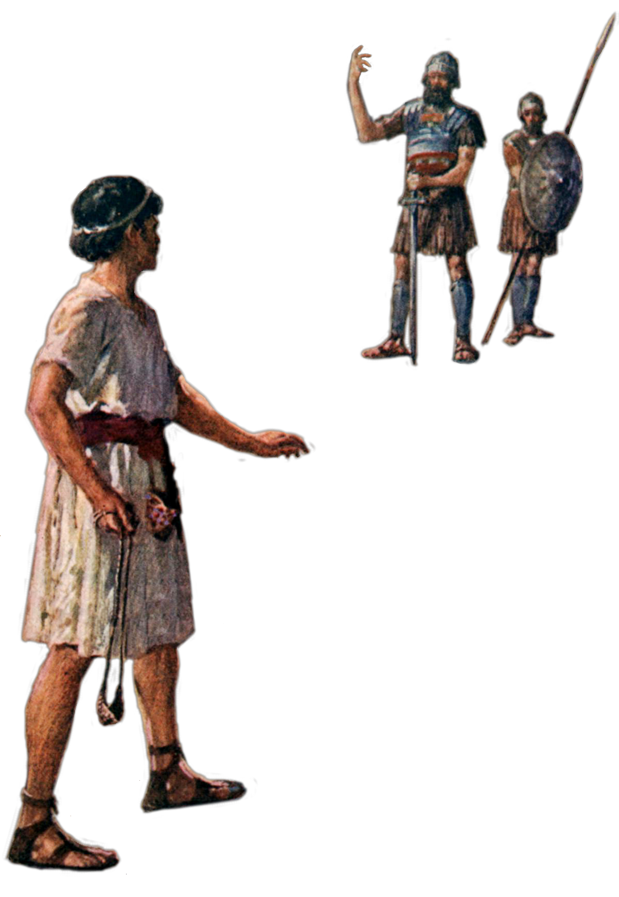 a két hadsereg felsorakozott egymással szemben, egy Góliát nevű filiszteus óriás előrejött és kihívta az