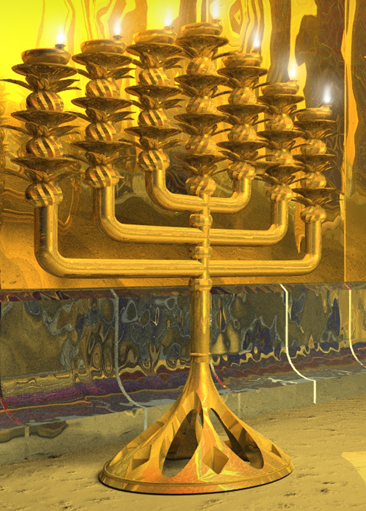 Megint másik látomásában Zakariás egy hétágú arany gyertyatartót látott, mindkét oldalán