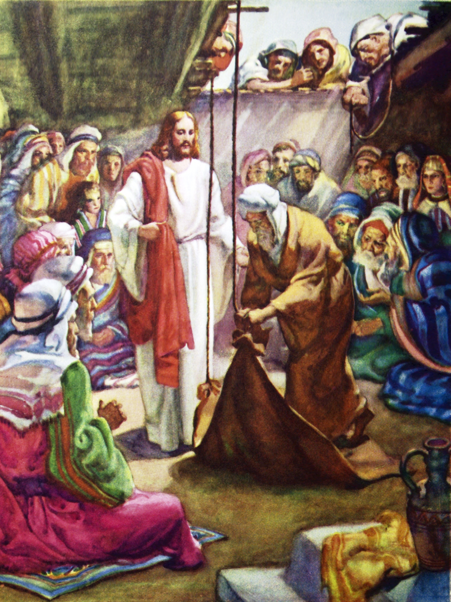 arra vágyott, hogy Jézus megbocsássa bűneit. Ezért megkérte barátait, hogy vigyék el Jézushoz. Ágyával együtt