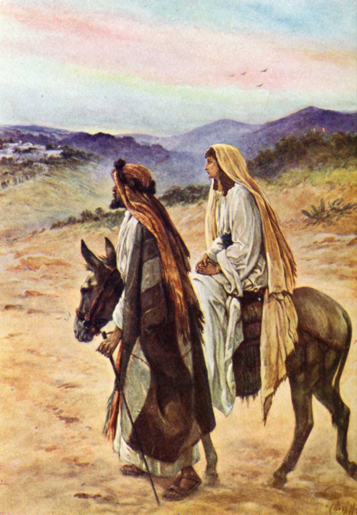 érkezése, Józsefnek és Máriának útra kellett kelnie a távoli városba. Lk 2:1-5.