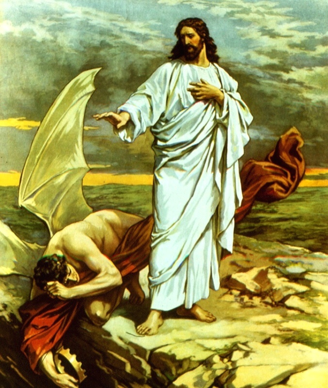 A legyőzött, dühös Sátánnak távoznia kellett.