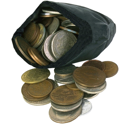sok penny, ötcentes és tízcentes volt benne. Néhány negyed és féldolláros is, de nagyon kevés dollár.