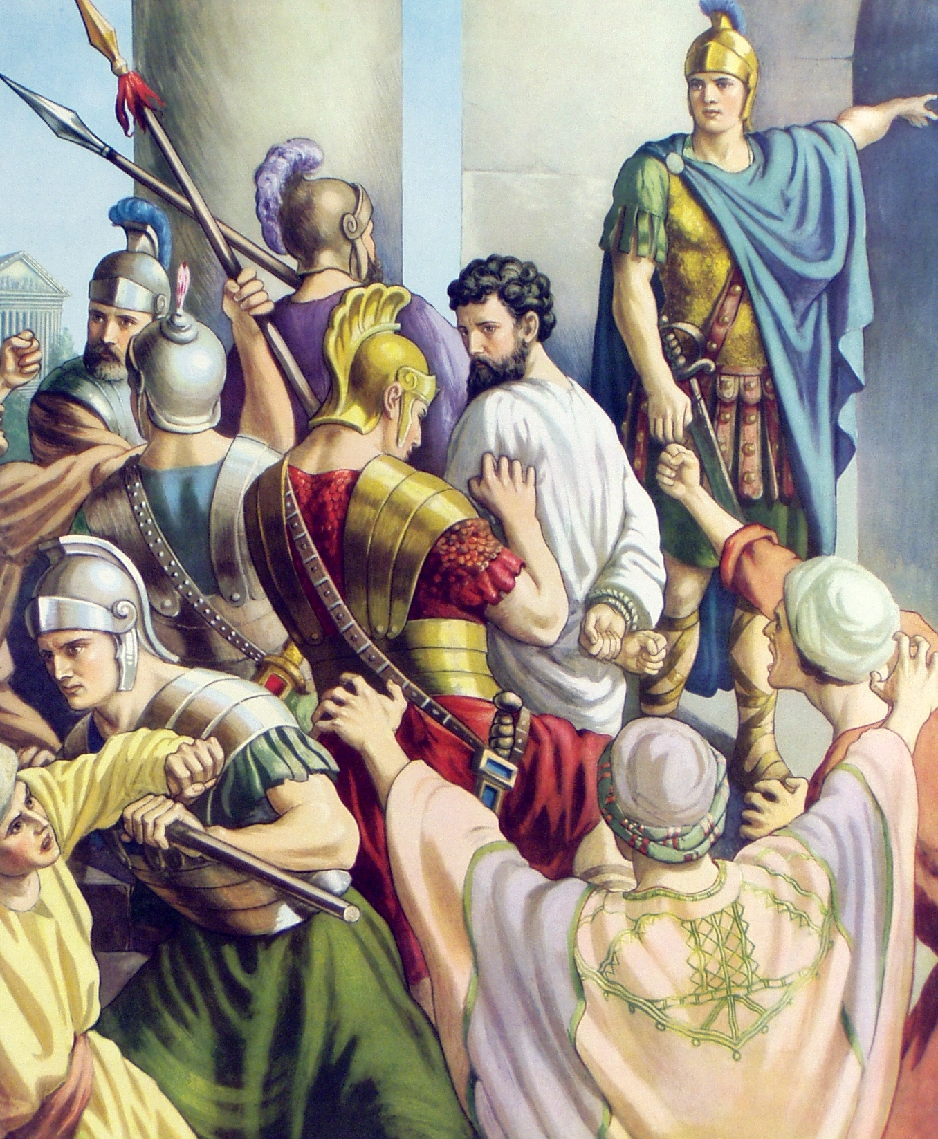 templomba. De mit sem számított, hogy Pál vádlói hazudtak, hamarosan az egész város felzúdult. Kivonszolták Pált