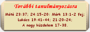 pusztulásának gondolata teljességgel meglepte a tanítványokat. Ámulva hallgatták Jézus szavait. Jézus azonban