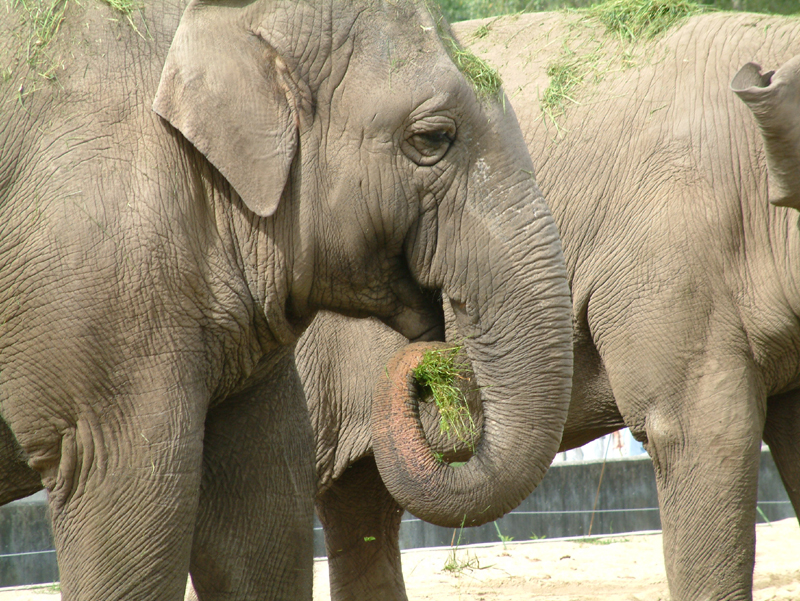 ormányával viszi a szájába, amit meg akar enni. Ha legközelebb