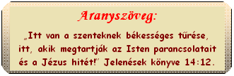 kellett érteniük. A „türelmes szentek” tudták, fontos a parancsolatok