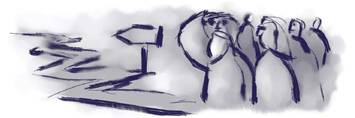 sokaság visszafelé tart a pusztába, ahonnan jöttek. Ezen a ponton szólal meg az