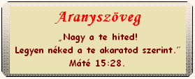 Jézus most a szegény asszonyra mosolygott és így szólt: „Óh, asszony, nagy a te hited! Legyen