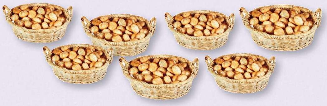 Darabokra törte a kenyeret és tanítványainak adta, akik szétosztották azt az emberek között. Mindenki jóllakott,